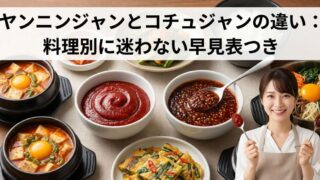 ヤンニンジャンとコチュジャンは、どちらも韓国料理でおなじみですが、実は役割がけっこう違います。コチュジャンは発酵した甘辛ペーストで、炒め物や煮込みの「土台のコク」を作るのが得意です。一方のヤンニンジャンは、しょうゆやごま油、ねぎ、にんにくな...