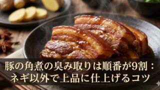 豚の角煮を作ったのに、なんだか豚のにおいが気になる。しかもネギが苦手だったり、家にない日もありますよね。でも大丈夫です。角煮の臭み取りは、ネギ以外でもちゃんと成功します。コツは、香りでごまかす前に「臭みの元を抜く」こと。そして生姜や香味野菜...