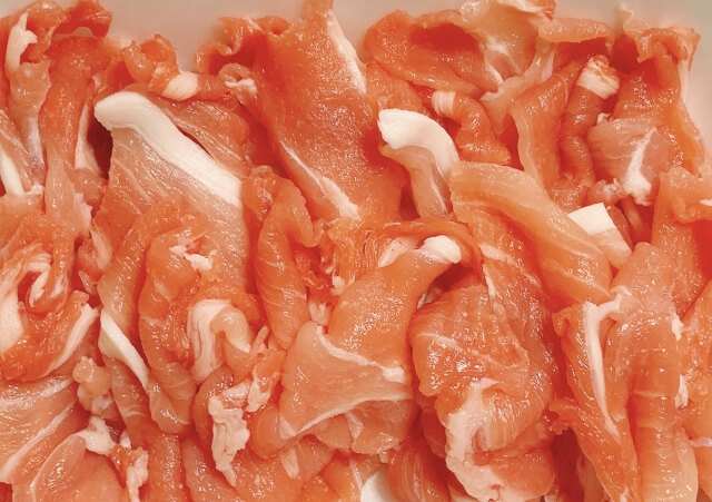 豚こま肉は薄切りの部位を寄せ集めた形で販売されることが多く、部位ごとに脂身や筋の割合が異なります。