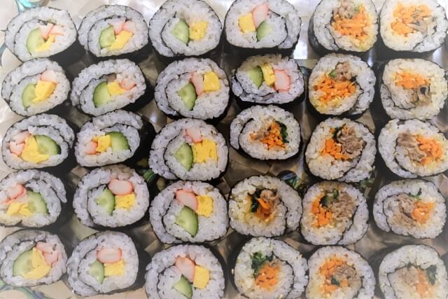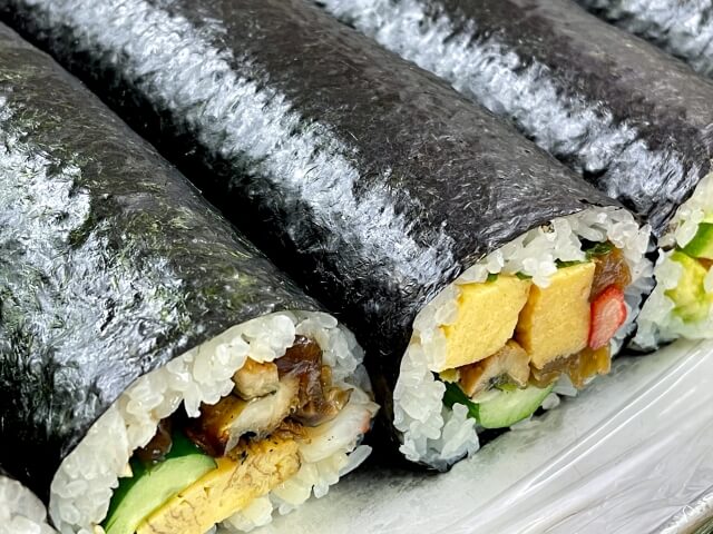 そのため、冷凍保存した恵方巻きは温めて食べるタイプ(焼肉巻きや卵巻き)のほうが向いています。