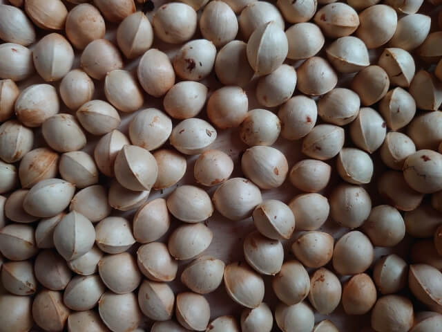 少し冷ましてから殻を割ると、中の実がつるんと出てきます。