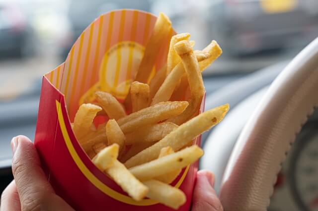 もし夜に食べる場合やカロリーを抑えたいなら、ポテトをサラダに変えたり、ドリンクを無糖系にするのがおすすめです。