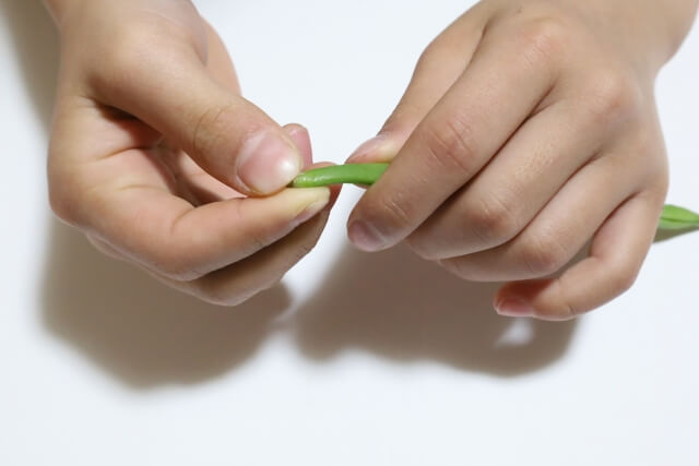 包丁をいんげんに軽く押し当ててプチッと音がする程度に切り込みを入れましょう。
