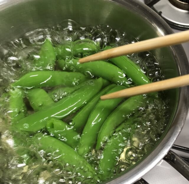 筋が硬くて取れないときは、まず1〜2分ほど下ゆでしてみましょう。