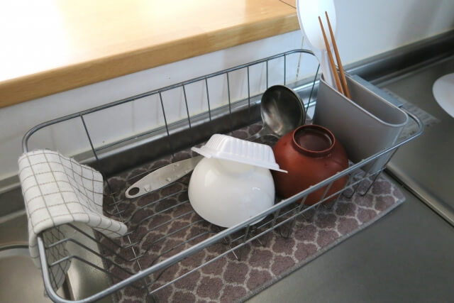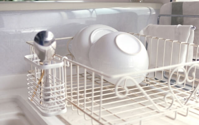 ラックは立体的な構造で多くの食器を立てて乾かせる反面、スペースを取る・掃除が面倒という欠点があります。