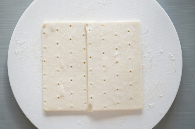 溶けたバターは層の間に染み込み、焼いてもふくらまない・サクサクしない生地に。
