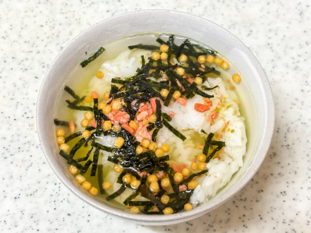 夜遅くに「少しだけ何か食べたい」という時に便利なのが、梅だし茶漬けです。