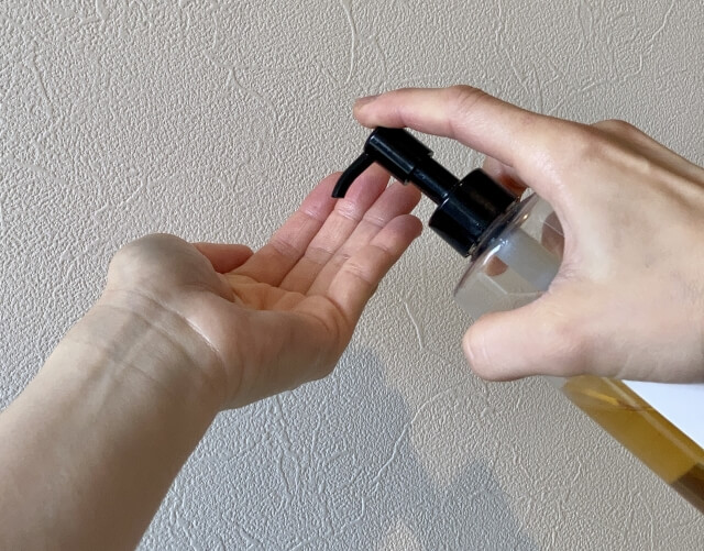 乾いた手にクレンジングオイルを2〜3滴なじませ、汚れが気になる部分をこすります。