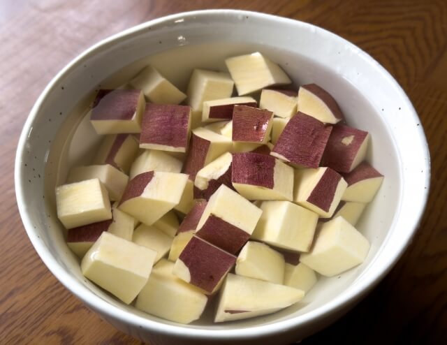 さつまいもを切る前にしっかり水洗いし、皮の表面の汚れやアクを落としておくと、ヤラピンの量をある程度抑えることができます。
