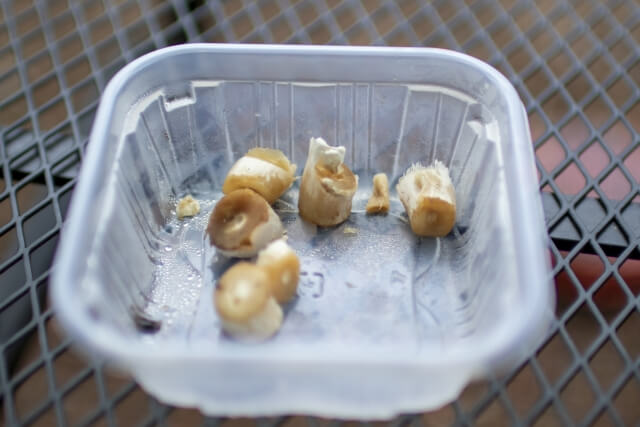 椎茸の「石づき」は、軸の根元にある少し硬い部分です。