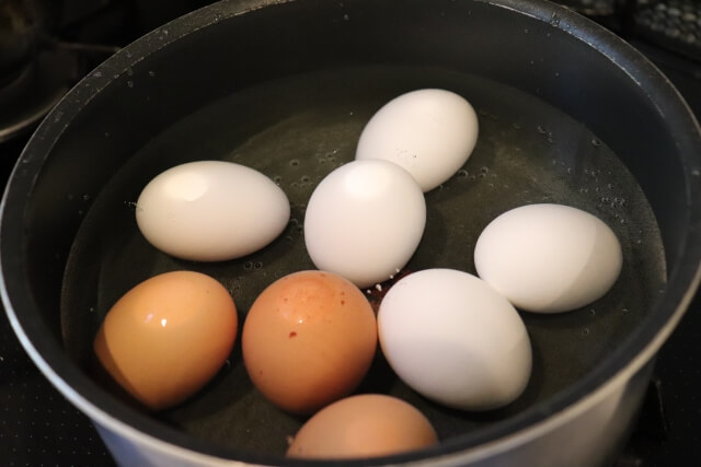 一度冷えた卵は、最初からゆでるときよりも火の通りに時間がかかるので、ゆっくり加熱しましょう。